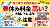 例)まねきねこ 徳島紺屋町店(2025年7月18日OPEN)の料金表抜粋