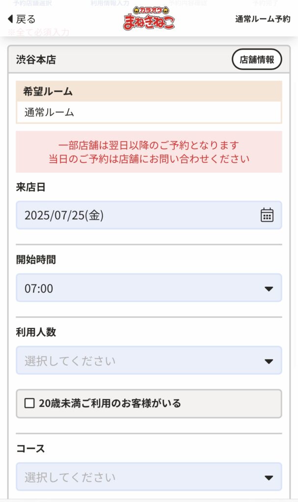 「友達とカラオケに行こう!」と決まって、まねきねこのアプリからフリータイム予約をしようとしたのですが…。