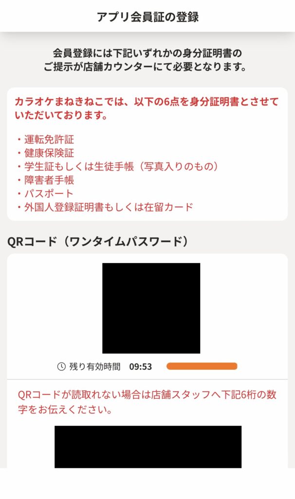 店舗受付で仮登録QRコードと身分証(運転免許証・学生証など)を提示し、本登録を完了させます