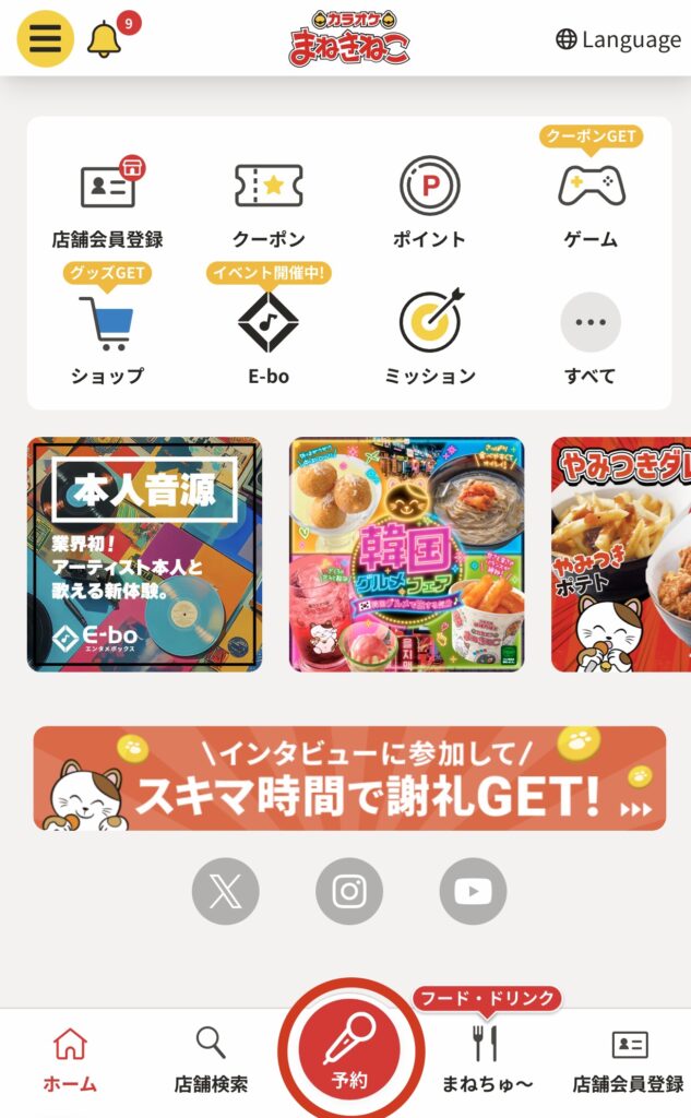 以下のアプリページからApp Store/Google Playの「カラオケまねきねこ」をインストールし、電話番号などを入力して仮登録